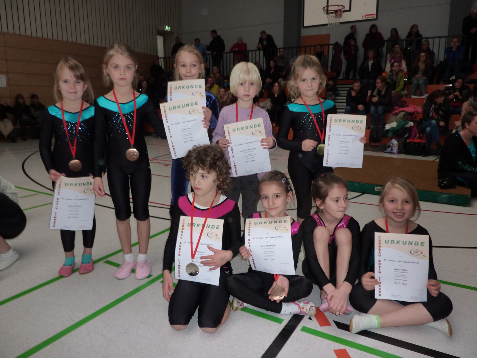 Unter der Leitung von Wolfgang Böhm und Kathrin Eiermann erleuchtet die Kinderturnabteilung die Bühne. Das Querflöten-Duo Chiara Schmid und Katharina Wörle spielt Weihnachtslieder und Ausschnitte aus der Zauberflöte.